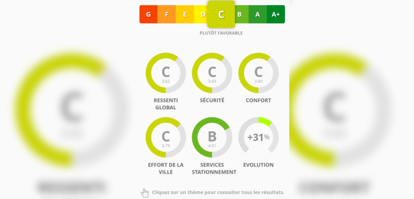 Ce score a été établi par 238 contributeurs qui ont évalué 6 items (ressenti global, sécurité, confort, effort de la ville, services et stationnement, évolution) et annoté précisément une carte en ligne.
