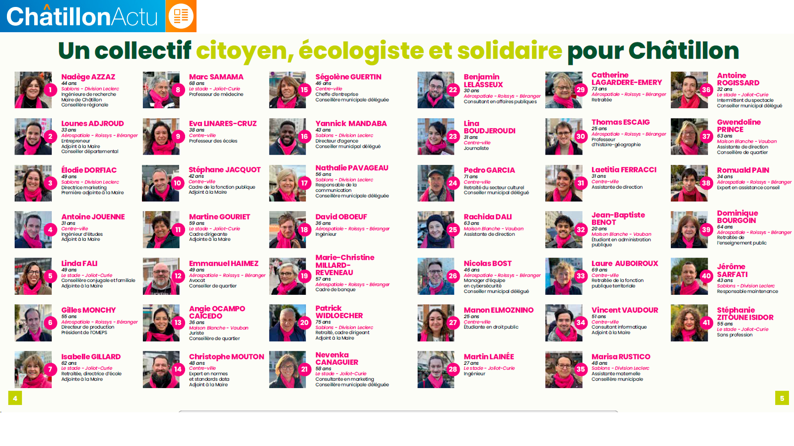 Cette équipe rassemble des visages familiers des Châtillonnaises et des Châtillonnais, issus de tous les quartiers, avec une grande diversité d’âges, de parcours et de profils.