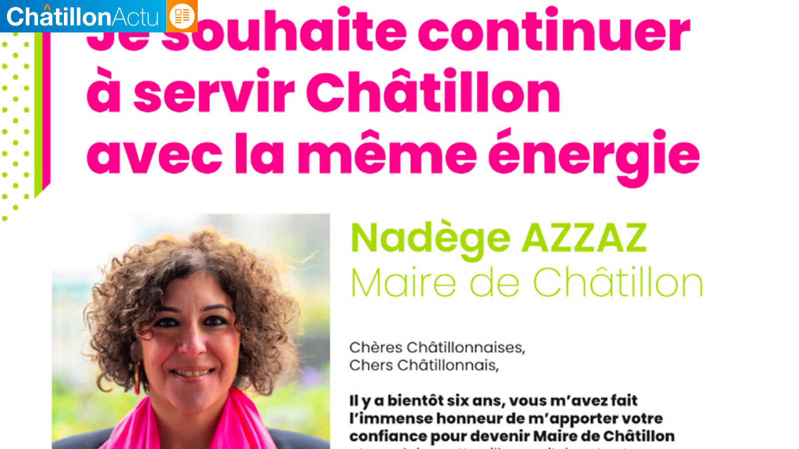 Chatillon-actu.fr : Madame Azzaz, pourquoi avez-vous décidé de vous représenter en 2026 ?